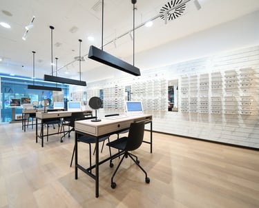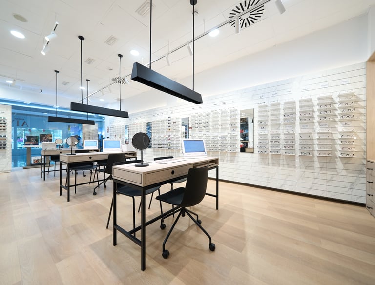 Ofrecemos soluciones personalizadas en decoración de interiores para ópticas, optimizando estética y funcionalidad.